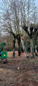 Élagage d’arbres : Nous pratiquons l’élagage avec précision et compétence, en respectant les normes de sécurité les plus strictes. Que ce soit pour la taille des branches, la réduction de la couronne ou l’élimination des branches dangereuses, nous assurons un travail de qualité pour la santé et la longévité de vos arbres.